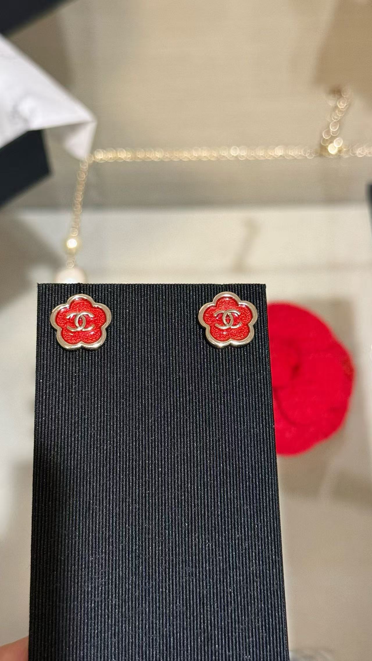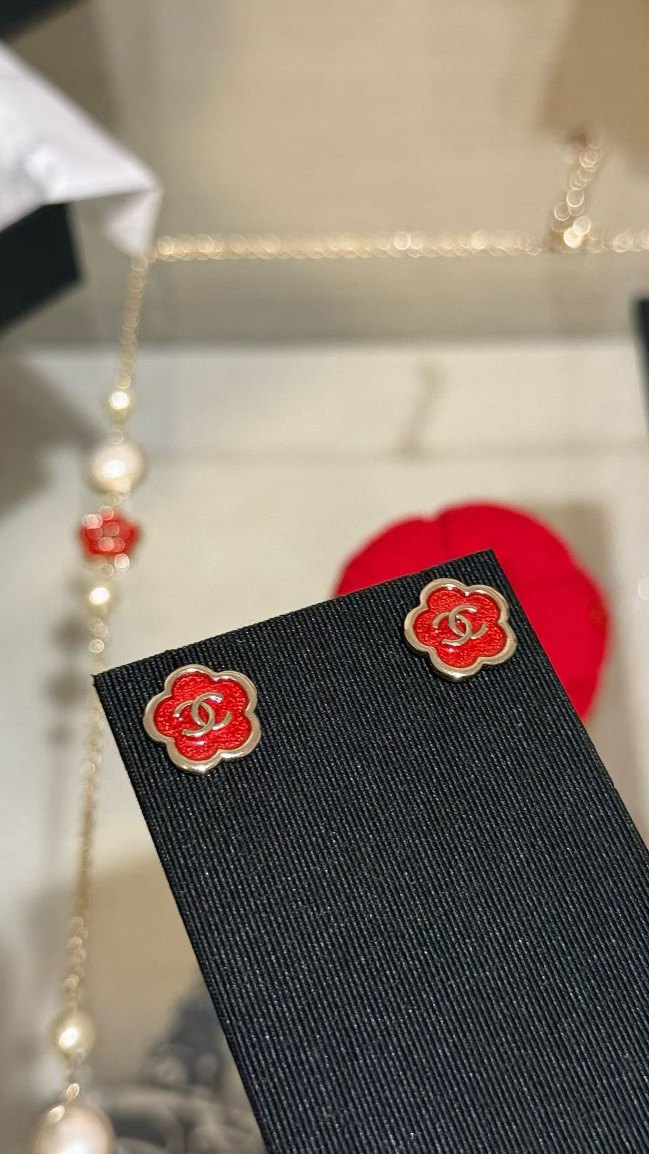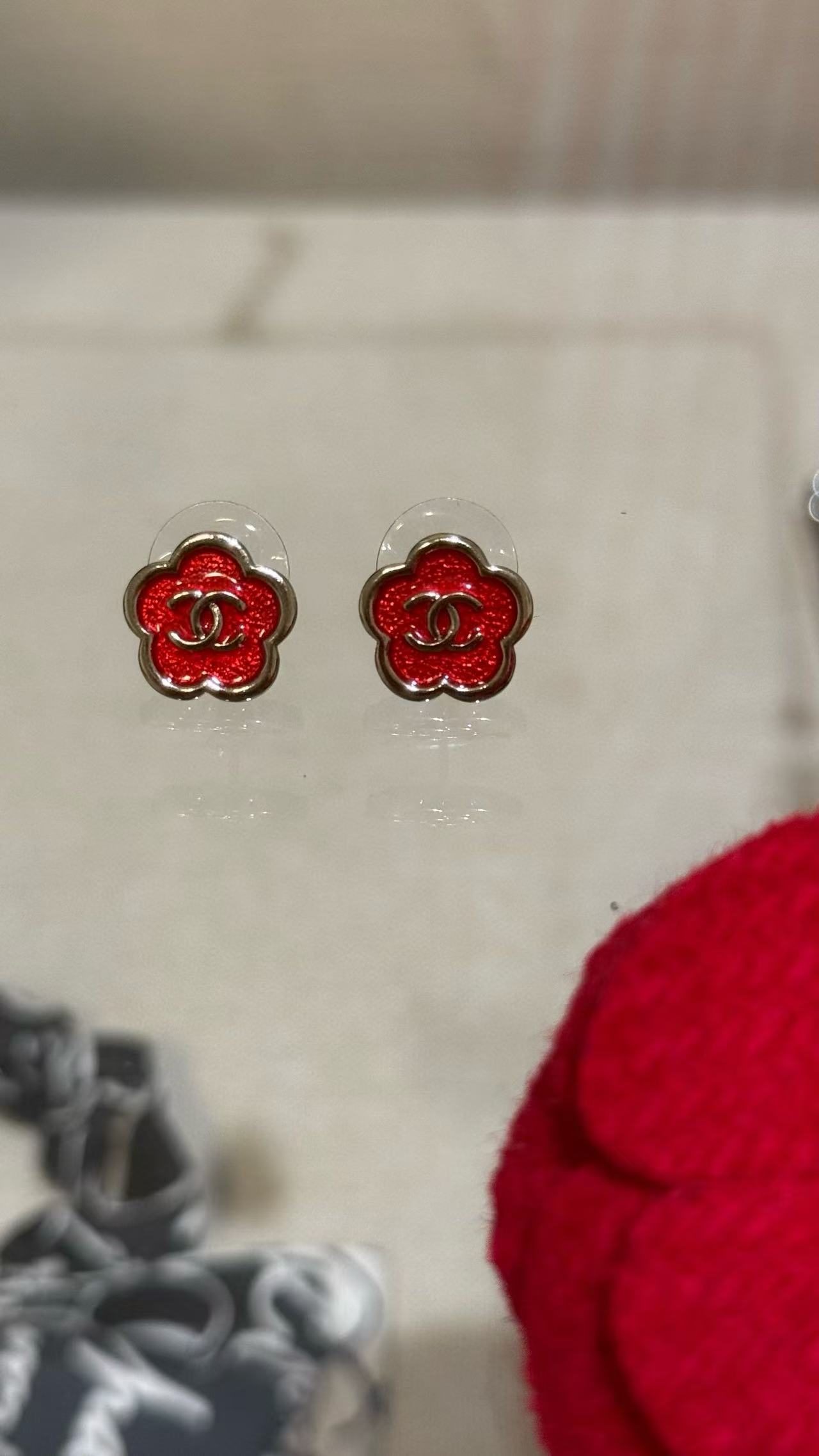 2025早秋 Chanel 红色珐琅滴釉山茶花复刻耳环