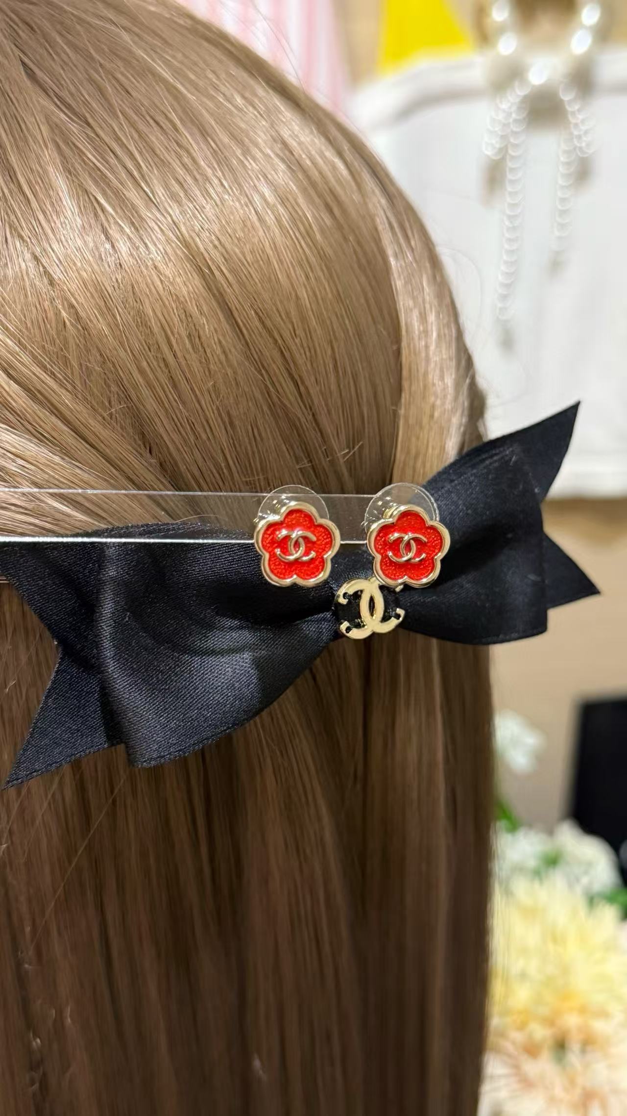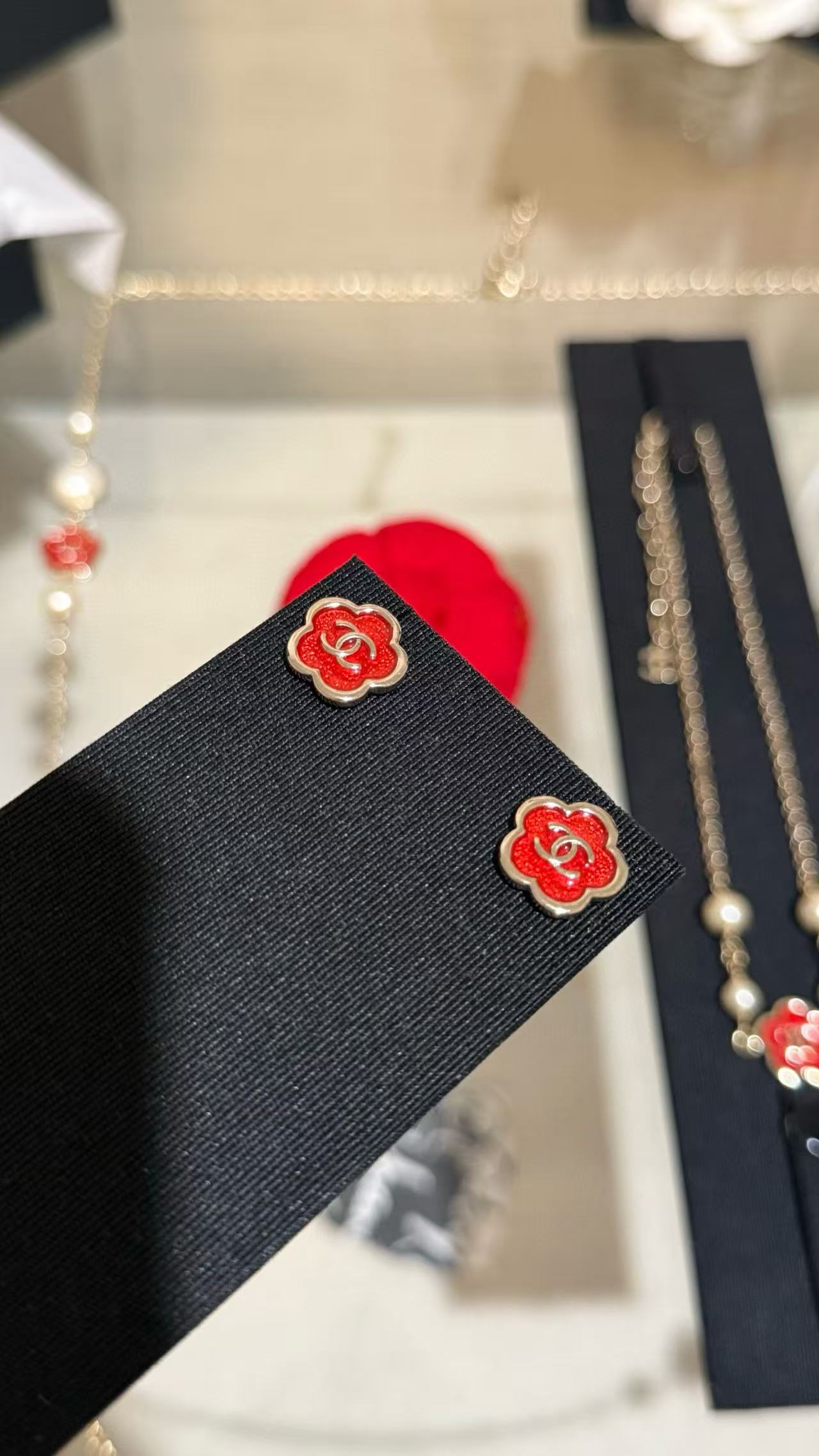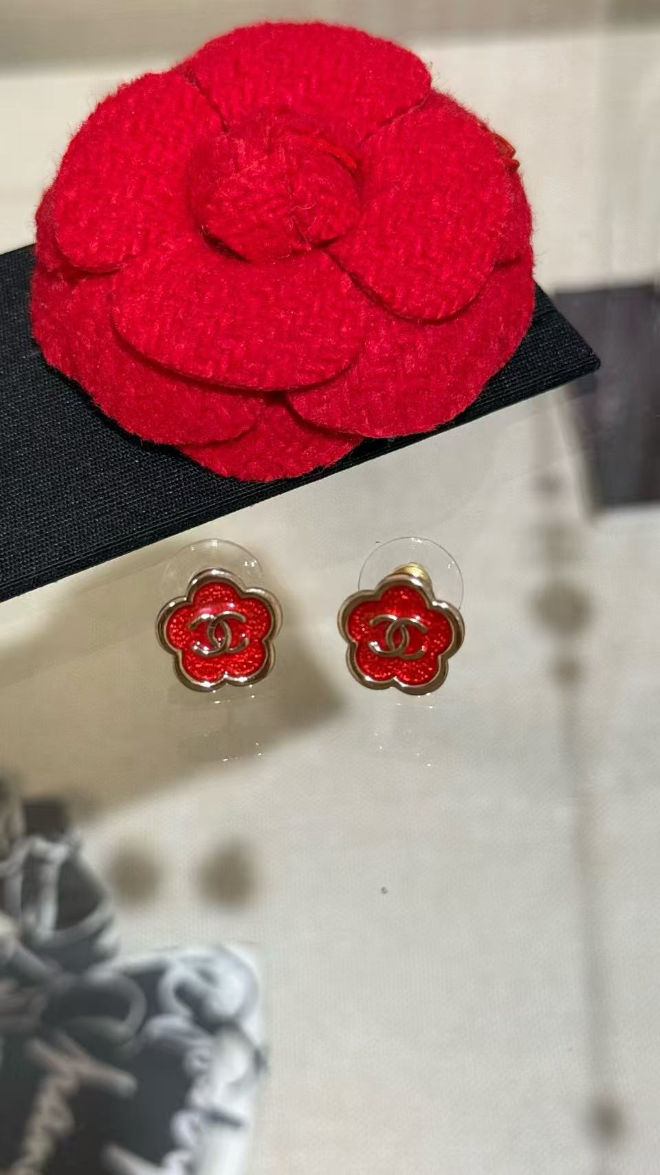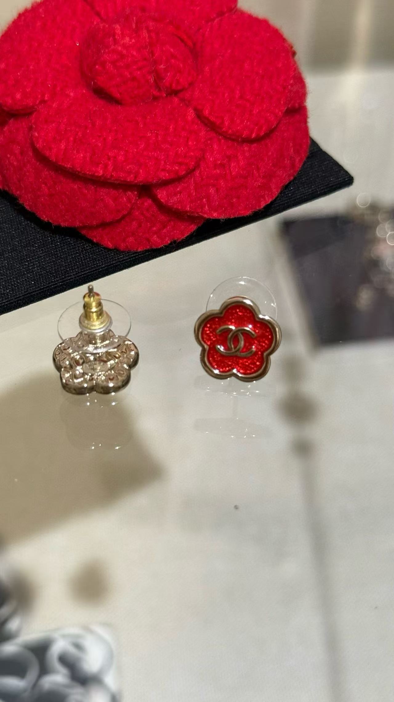2025早秋 Chanel 红色珐琅滴釉山茶花复刻耳环