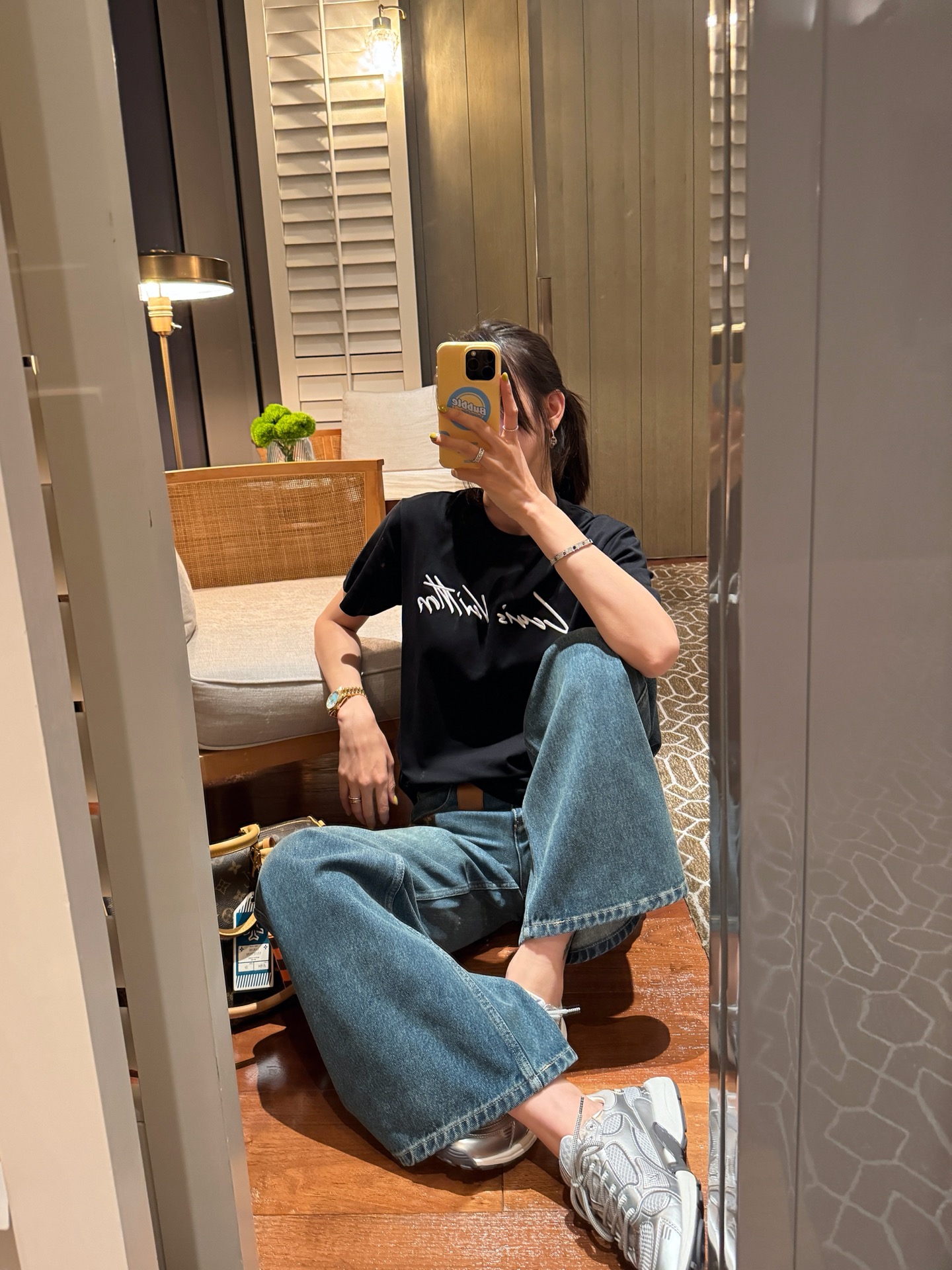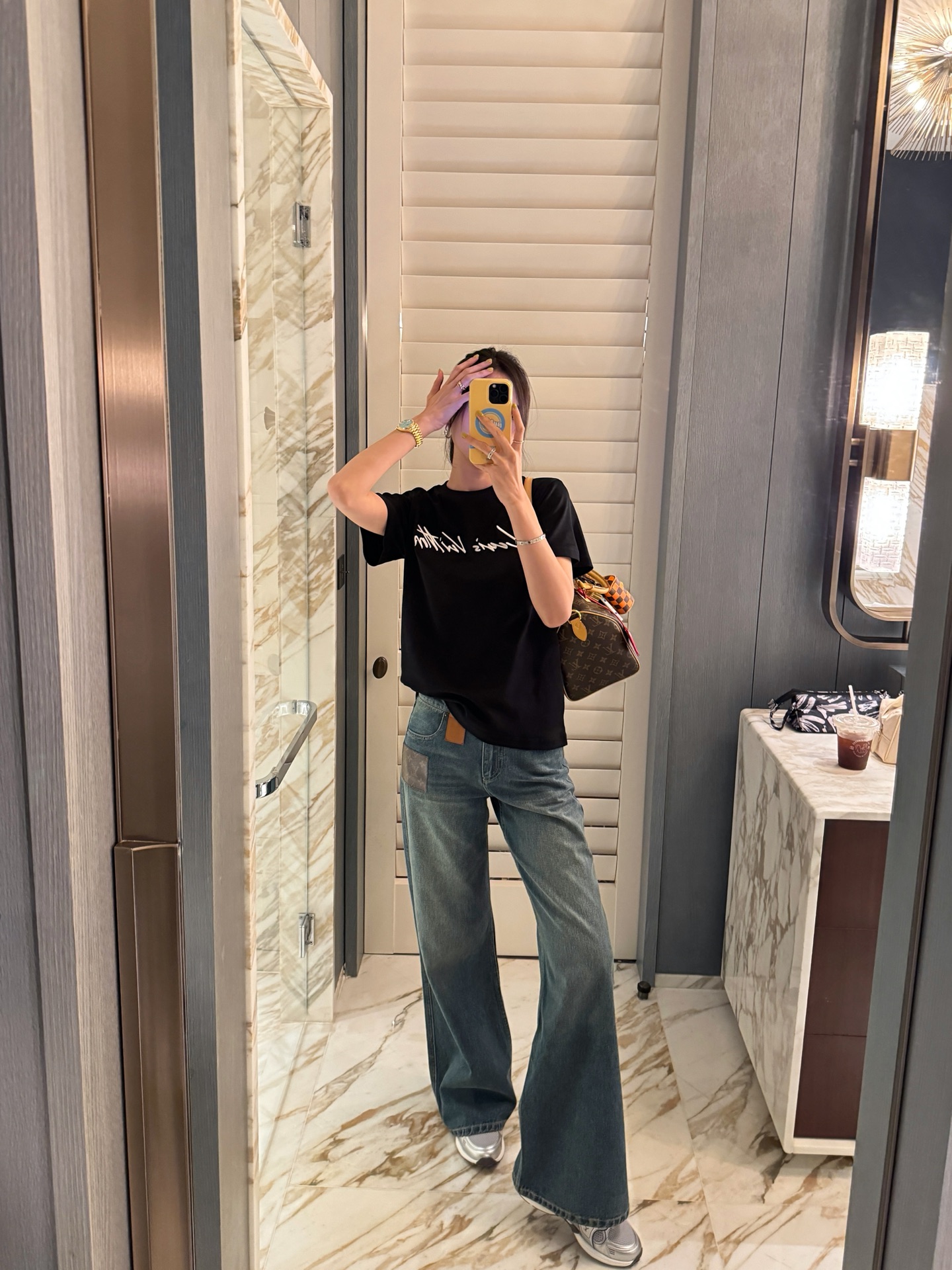 胸前以手寫體Logo刺繡點綴,簡約中又帶有一點小巧思,低調卻不失品味,這正是連奢侈品都無法比擬的獨特風格。版型俐落,剪裁乾淨,上身效果非常顯瘦,完全是日常穿搭裡的「不費力時髦」,搭配一條高仿的牛仔褲,效果更佳。