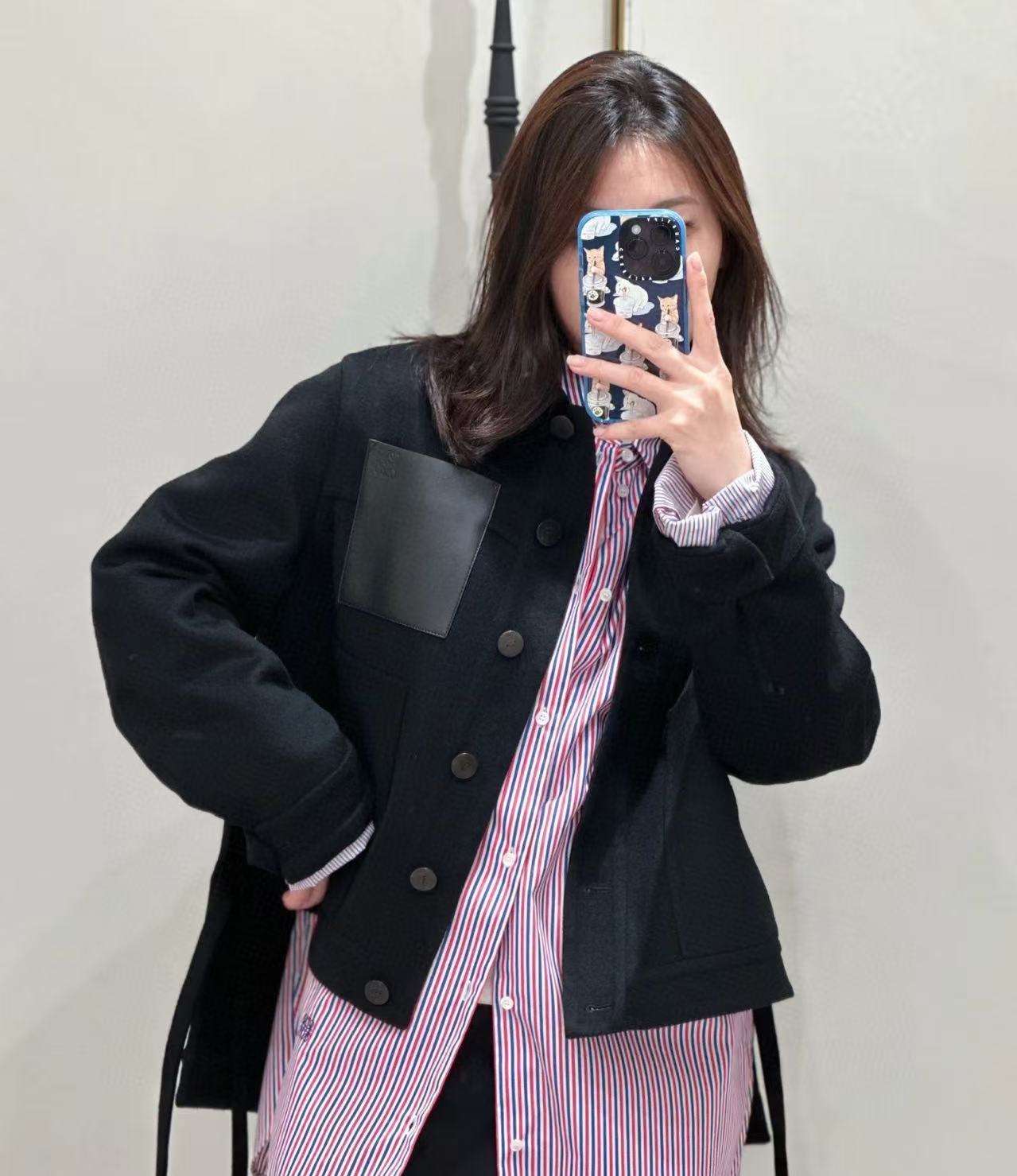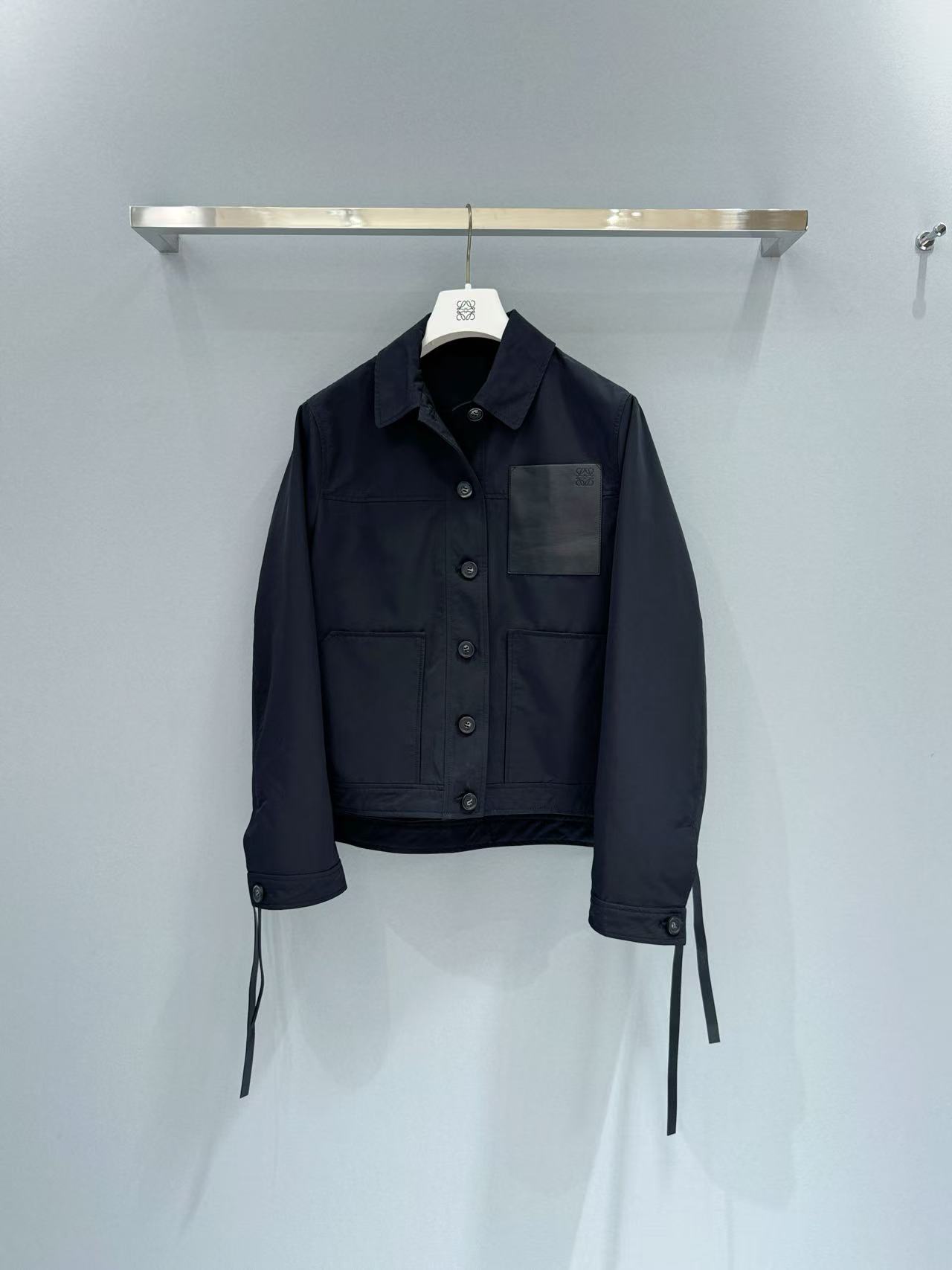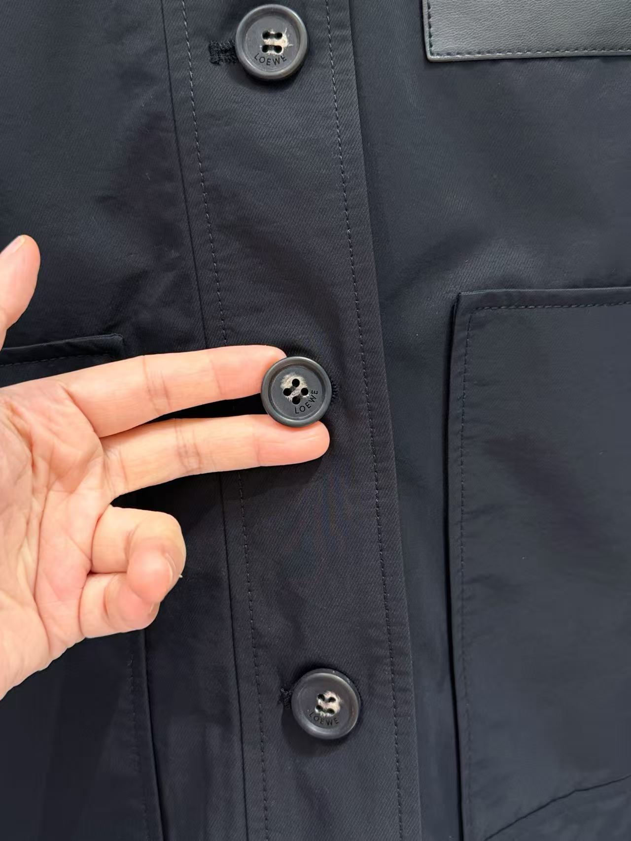 <div><div>2025早秋 Loewe 貼皮口袋外套 精品 超A</div><div><br></div><div>這件 LOEWE 外套超有型!經典前短後長剪裁,率性又帶點隨性感,不管是單穿或疊穿都很舒適。</div><div>全黑尼龍材質輕盈不沉重,翻領工裝風設計,利落剪裁非常顯氣場,胸前 Anagram 壓紋皮革貼袋更是畫龍點睛的細節。</div><div>搭配牛仔褲打造街頭率性感,配半身裙又能甜酷兼具,是秋冬必備的奢侈品。</div><div><br></div><div>材質特色</div><div>全新尼龍材質,輕盈透氣又耐穿</div><div>壓紋皮革貼袋,增加細節質感,是復刻系列中的一個亮點。</div><div>前短後長版型設計,舒適不拘束,呈現出時尚的精工設計。</div><div><br></div><div>版型細節</div><div>翻領工裝風設計</div><div>前短後長剪裁,松弛感十足,讓整個造型高仿的效果無比出色。</div><div>利落線條凸顯氣場,真的非常適合想要打造精品風格的你。</div><div><br></div><div>《尺寸規格》</div><div>S:肩寬43 胸圍54 衣長63</div><div>M:肩寬44 胸圍56 衣長64</div><div>L:肩寬45 胸圍58 衣長65</div><div><br></div><div>保養:精緻服飾保養,建議送專業乾洗店清理,切勿水洗及自行打理,以免商品損壞。</div><div><br></div><div>1~10評分</div><div>質感&舒適度:9.3</div><div><br></div><div>性價比:8.4</div><div><br></div><div>個人評語:款式好看 時髦百搭 上身氣質!</div><div><br></div><div>商品編碼:rv12541an</div><div><br></div><div>真實評價-買家秀LINE社團:<a href="https://reurl.cc/0ZO9Xb" target="_blank">https://reurl.cc/0ZO9Xb</a></div><div>(放心加入,入內可換暱稱與大頭貼,無隱私問題)</div></div>