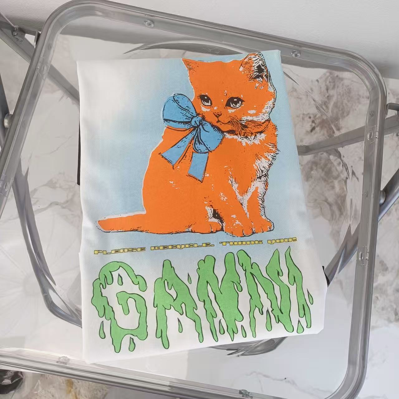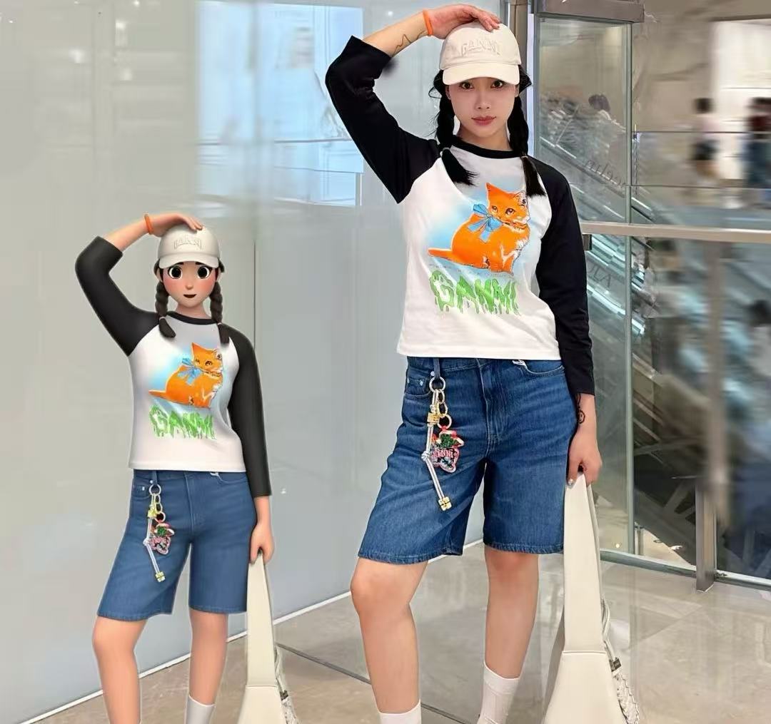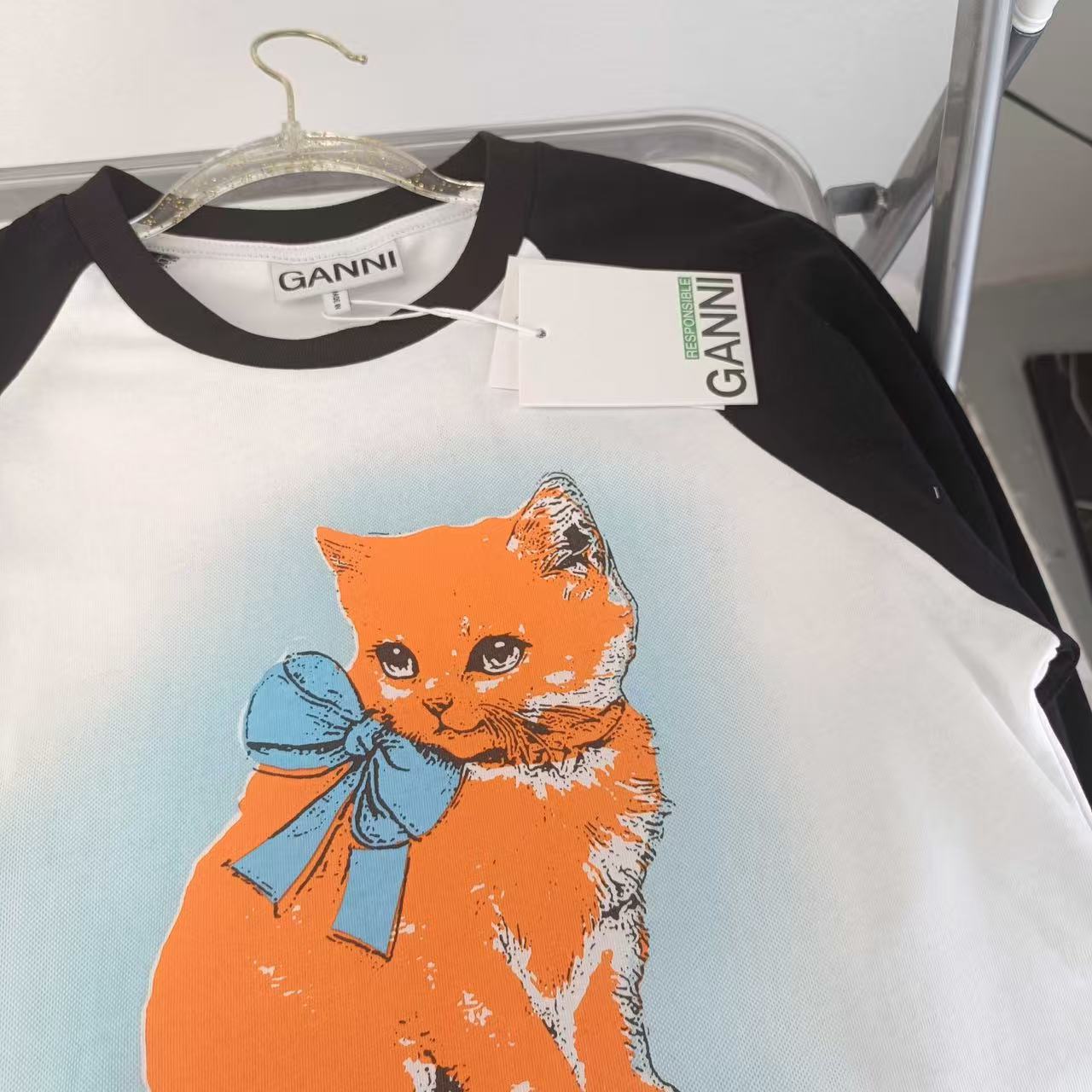 2025早秋新品 Ganni家 貓咪圖案拼色長袖