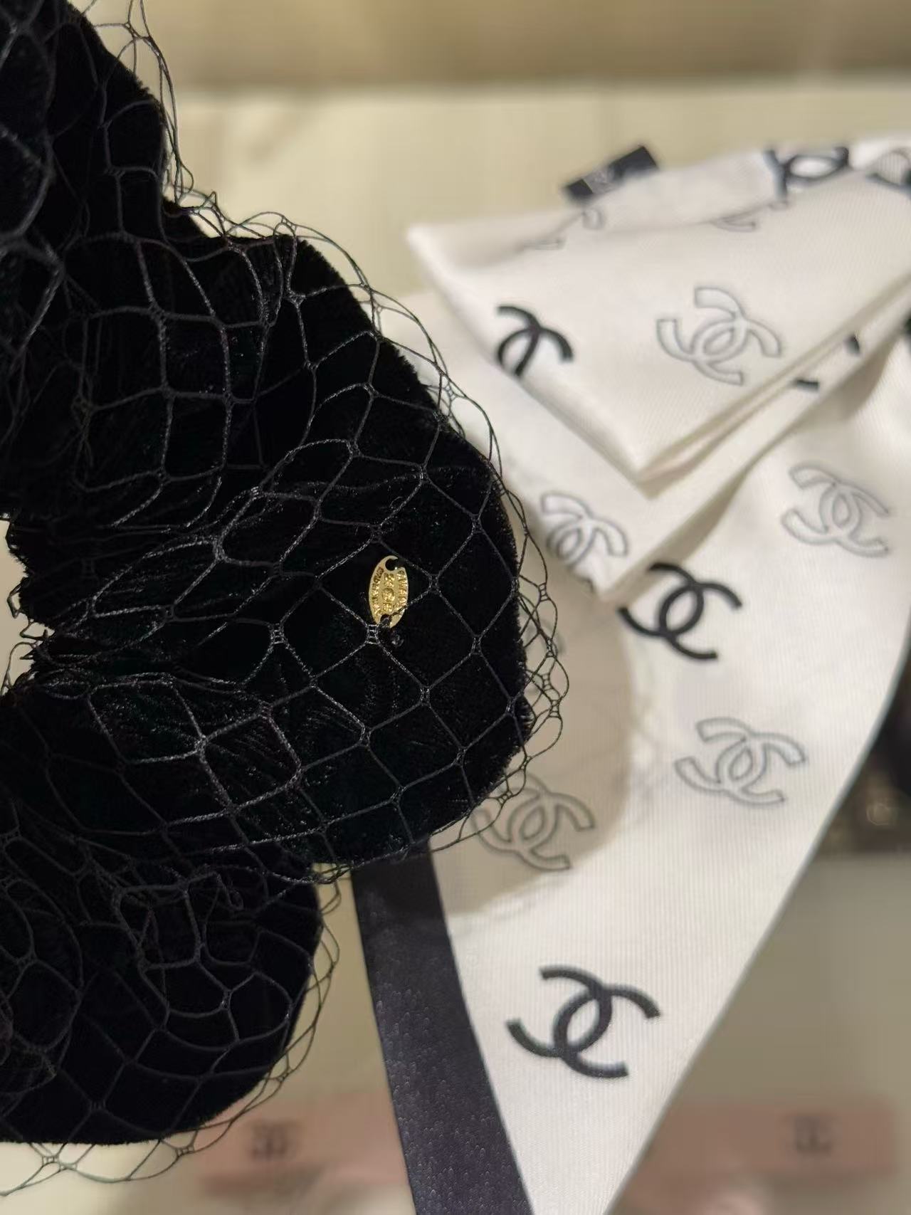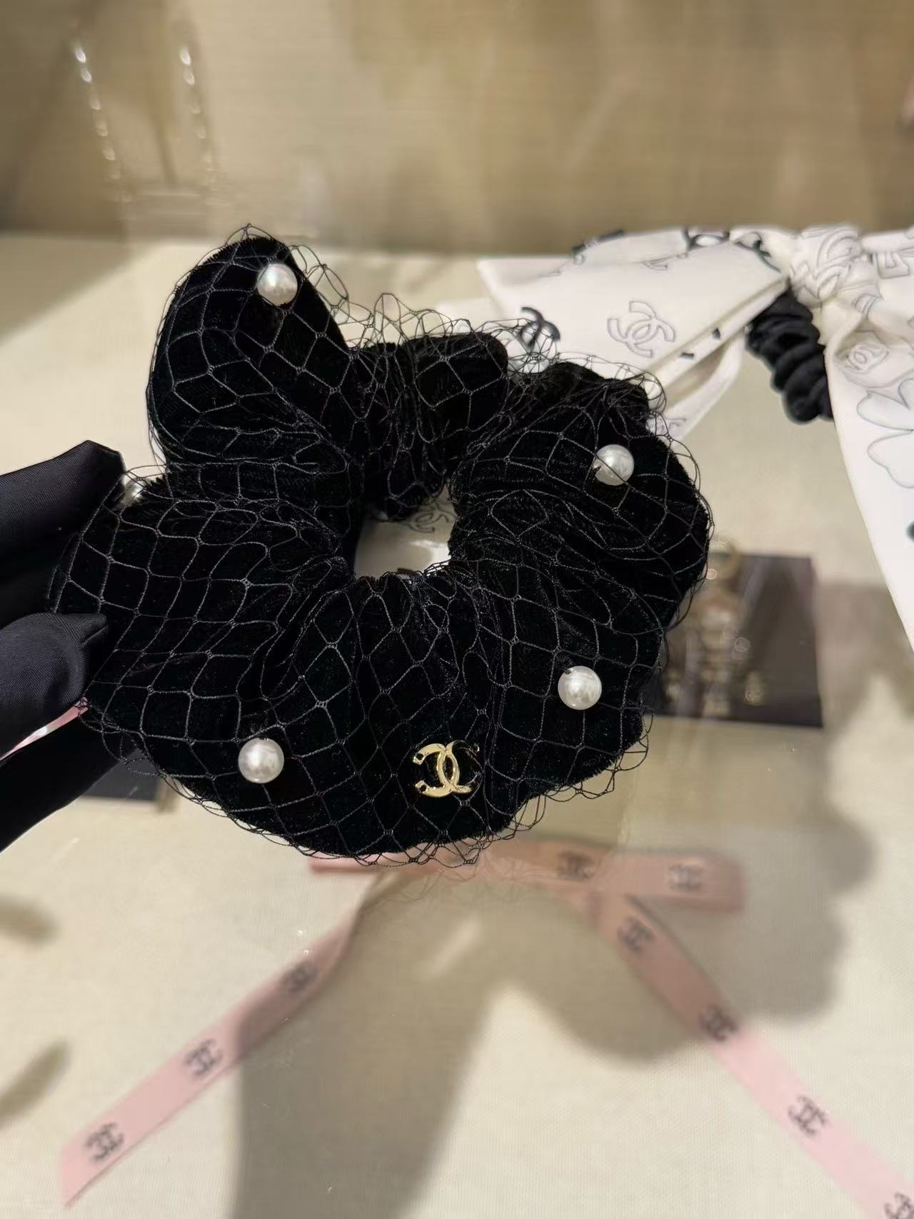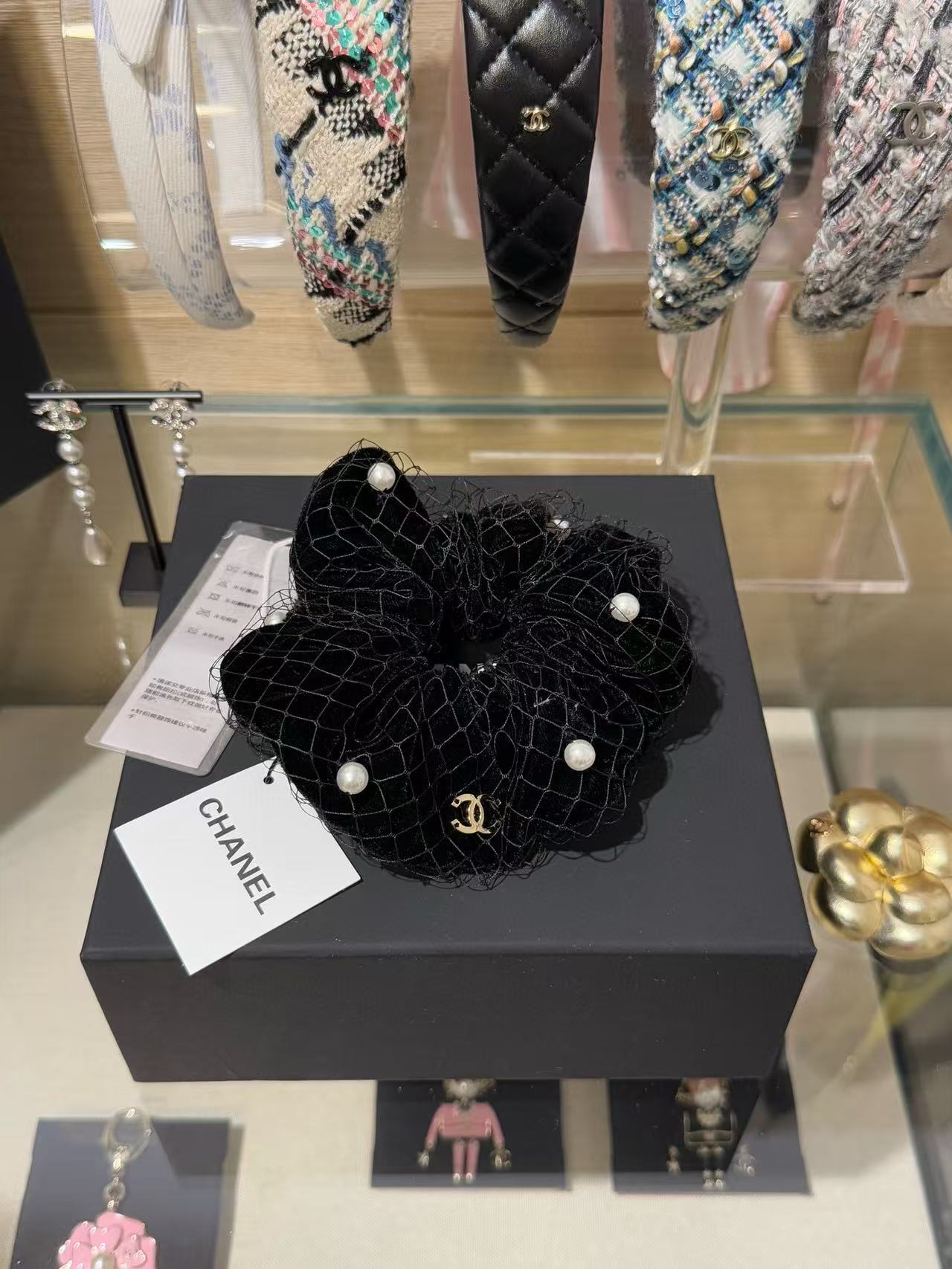 2025早秋 Chanel 黑絲絨網紗珍珠大髮圈 精品 高仿