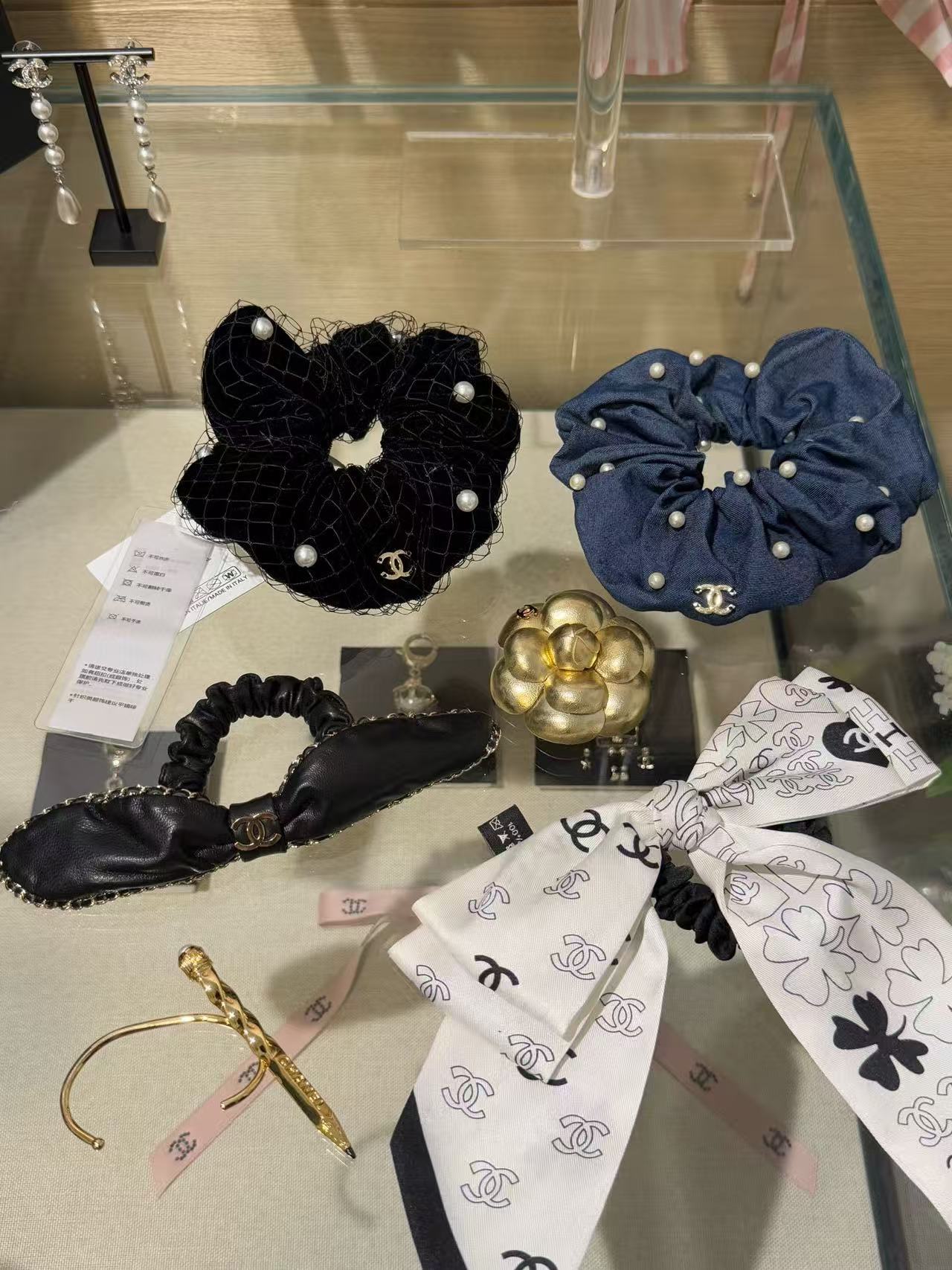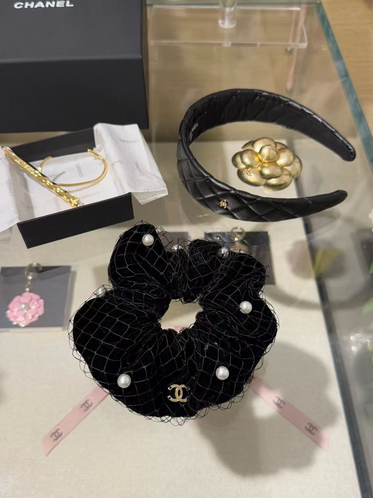 這款大髮圈以經典雙C徽標為核心,淺金色調低調奢華,黑絲絨與網紗包裹增添復古層次,小珍珠點綴則注入甜美女人味。整體設計精緻不張揚,貴氣感如同高仿奢侈品般完美。無論綁馬尾還是半扎,都能輕鬆展現優雅氣場。