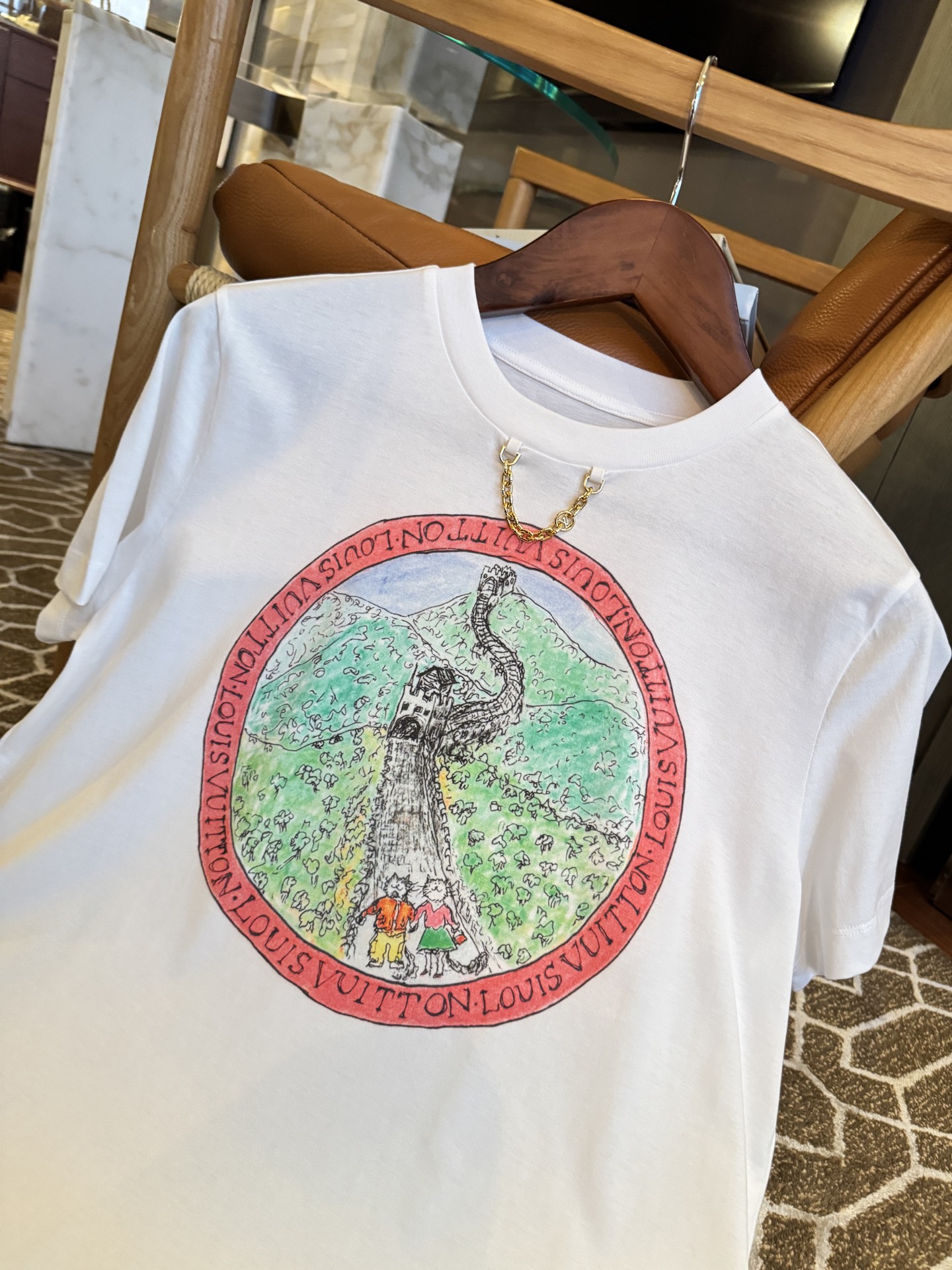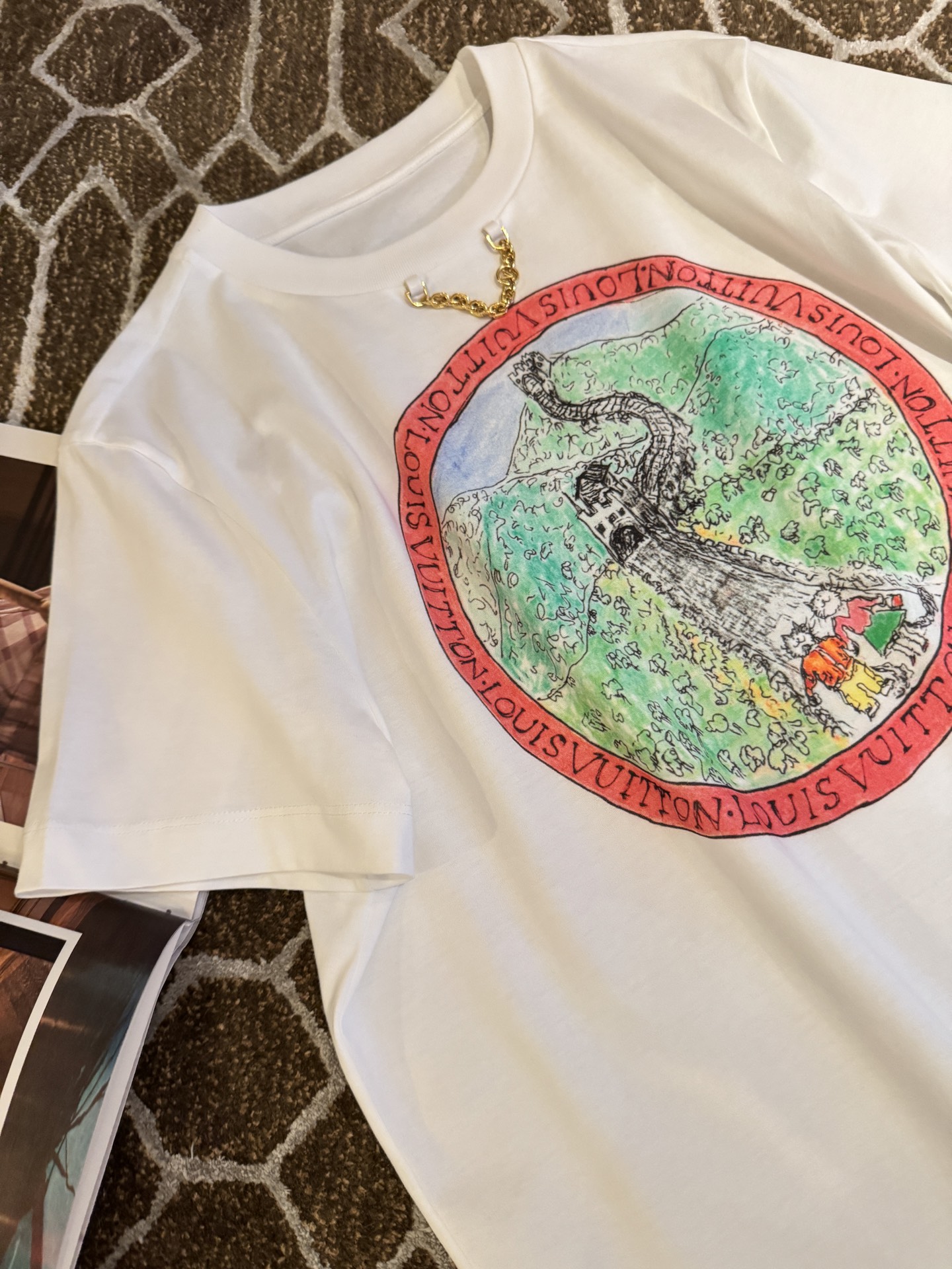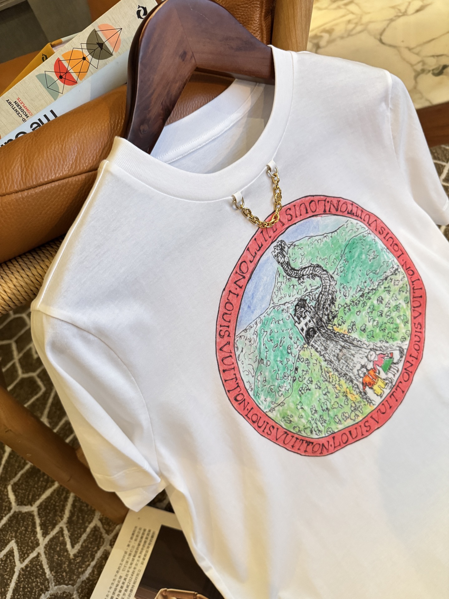 2025秋冬新品 Louis Vuitton 聯名GC貓咪系列白色印花短袖 精品 高仿