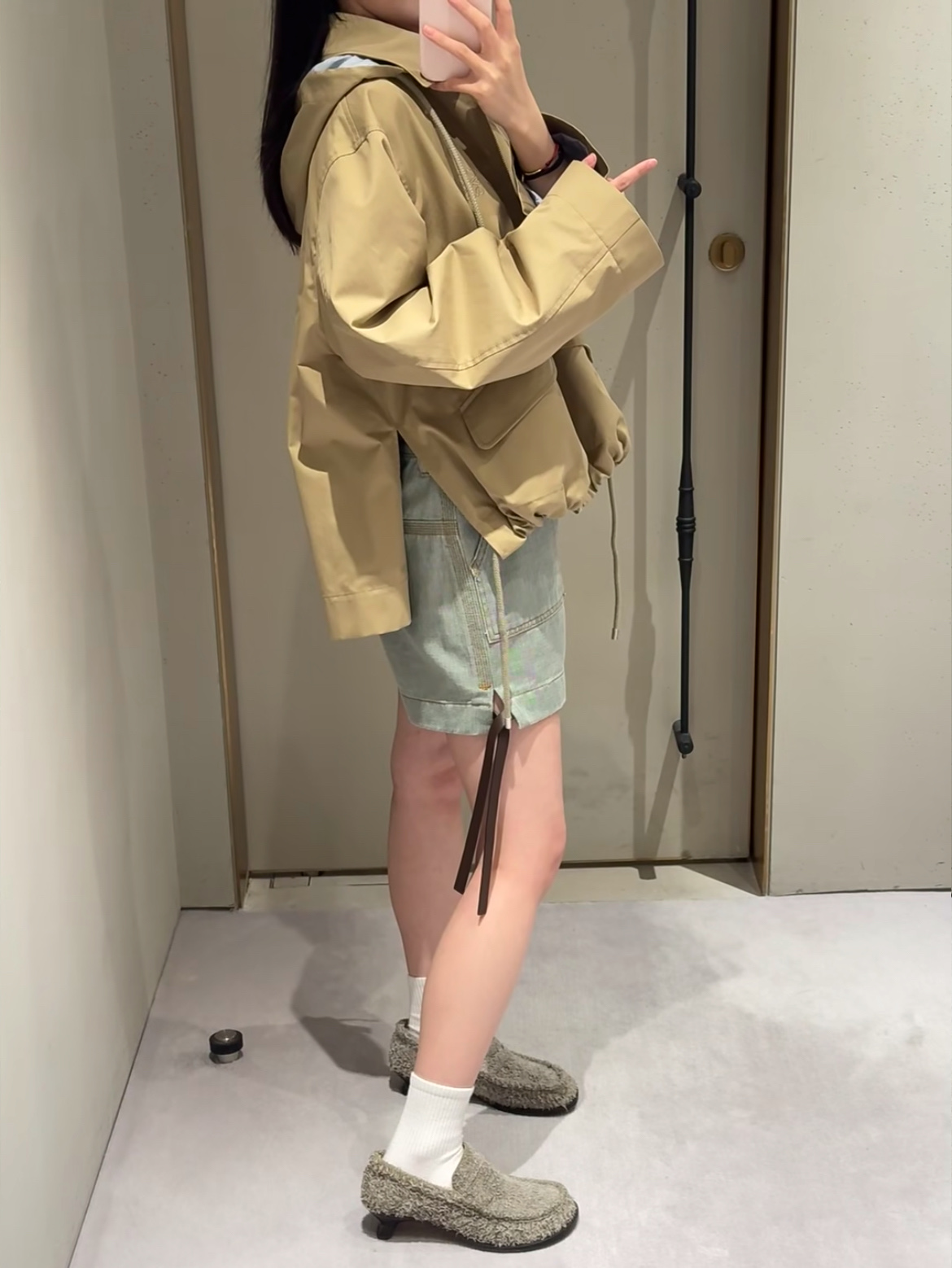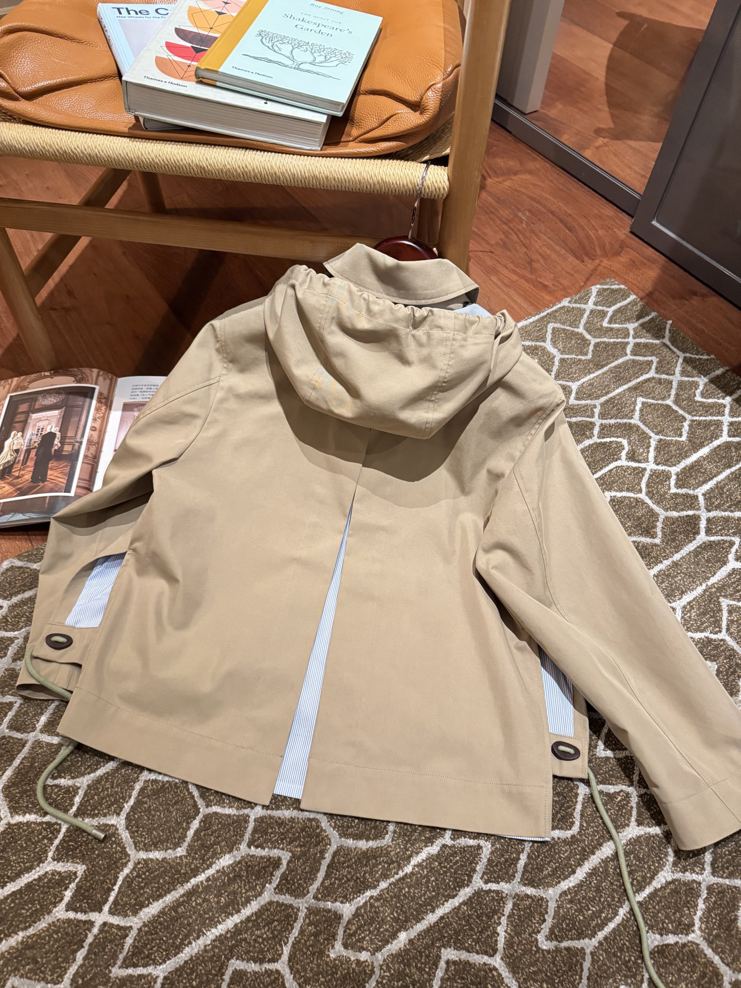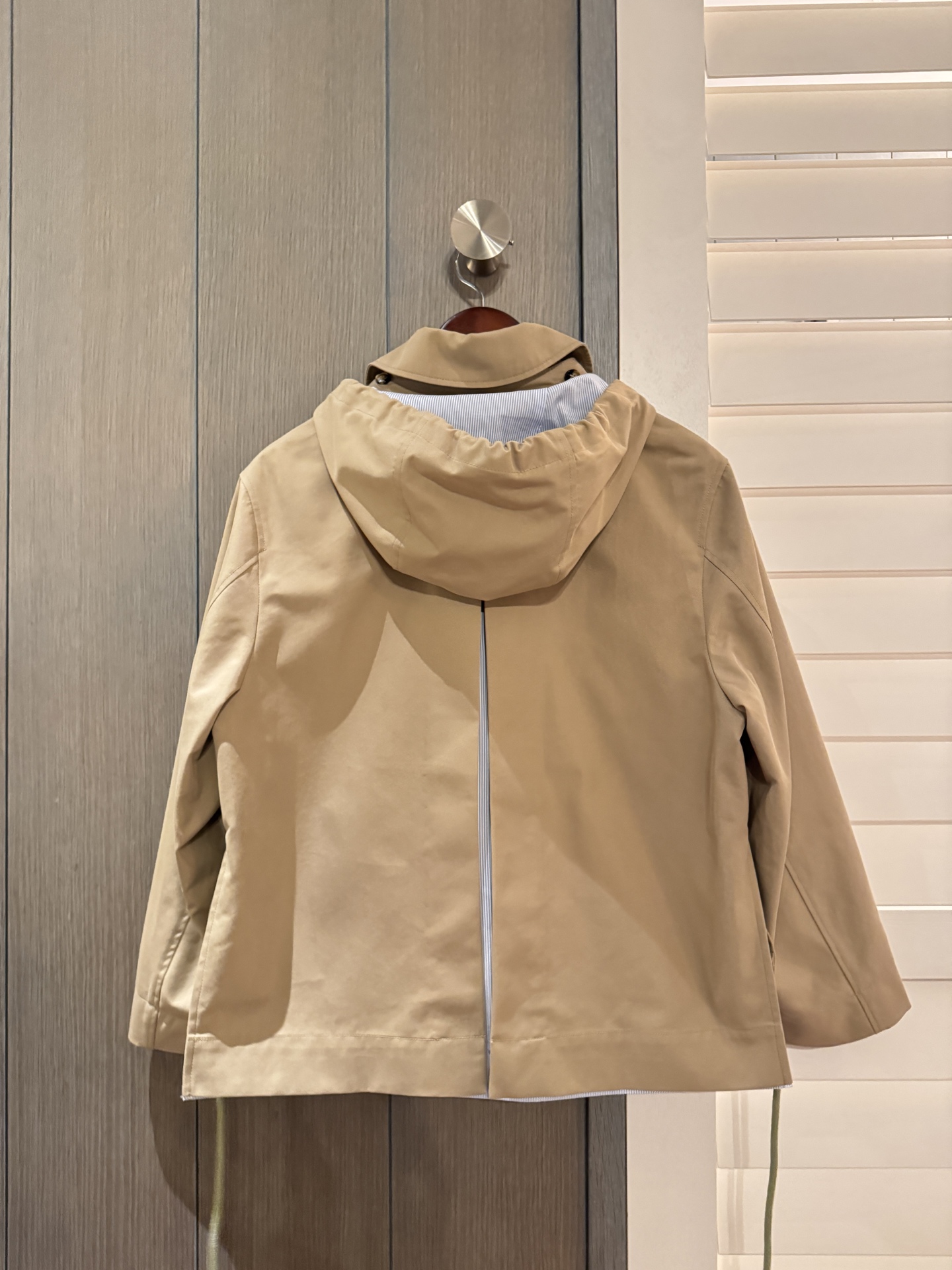 使用品牌特選的定製材質,手感滑順、垂墜度極佳。挺度高但又不厚重,兼具透氣與防風效果,無論春季或初秋都能輕鬆駕馭。質地乾爽不易皺,出門一整天依舊維持俐落外型,是一件真正「實穿又高級」的單品,值得作為奢侈品收藏之一。