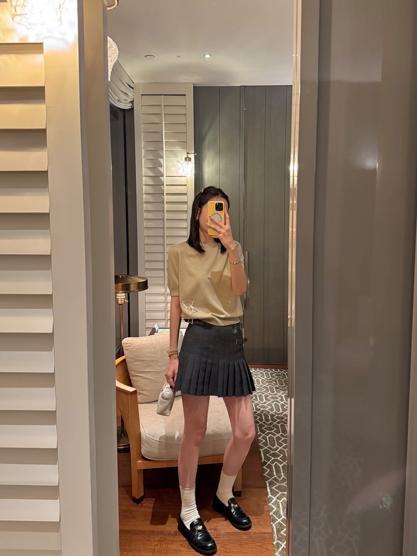 ✔︎ 想提升質感?配西裝褲+小皮鞋立刻變 OL 高級感,搭配金色配件更是精工細作。
