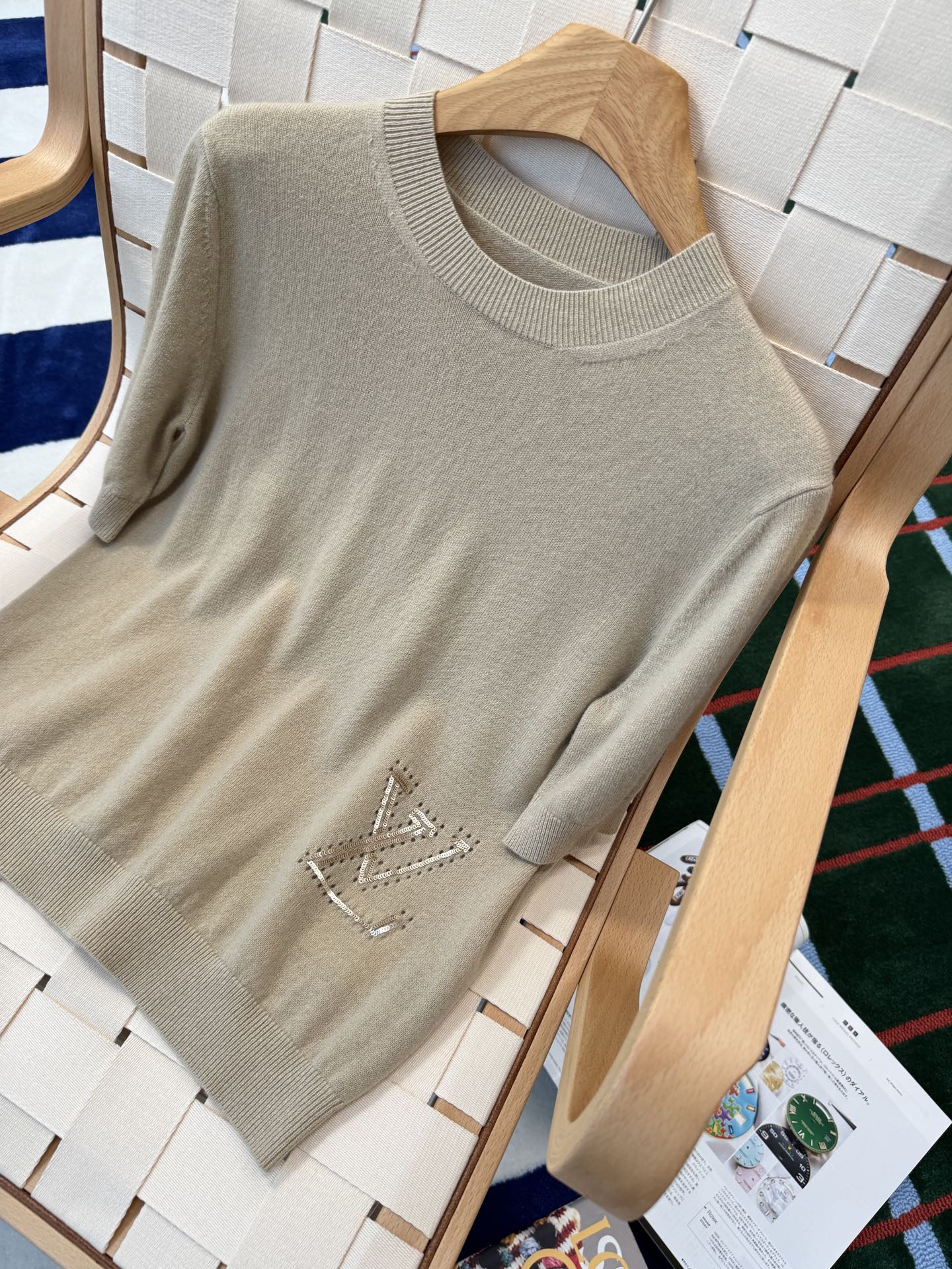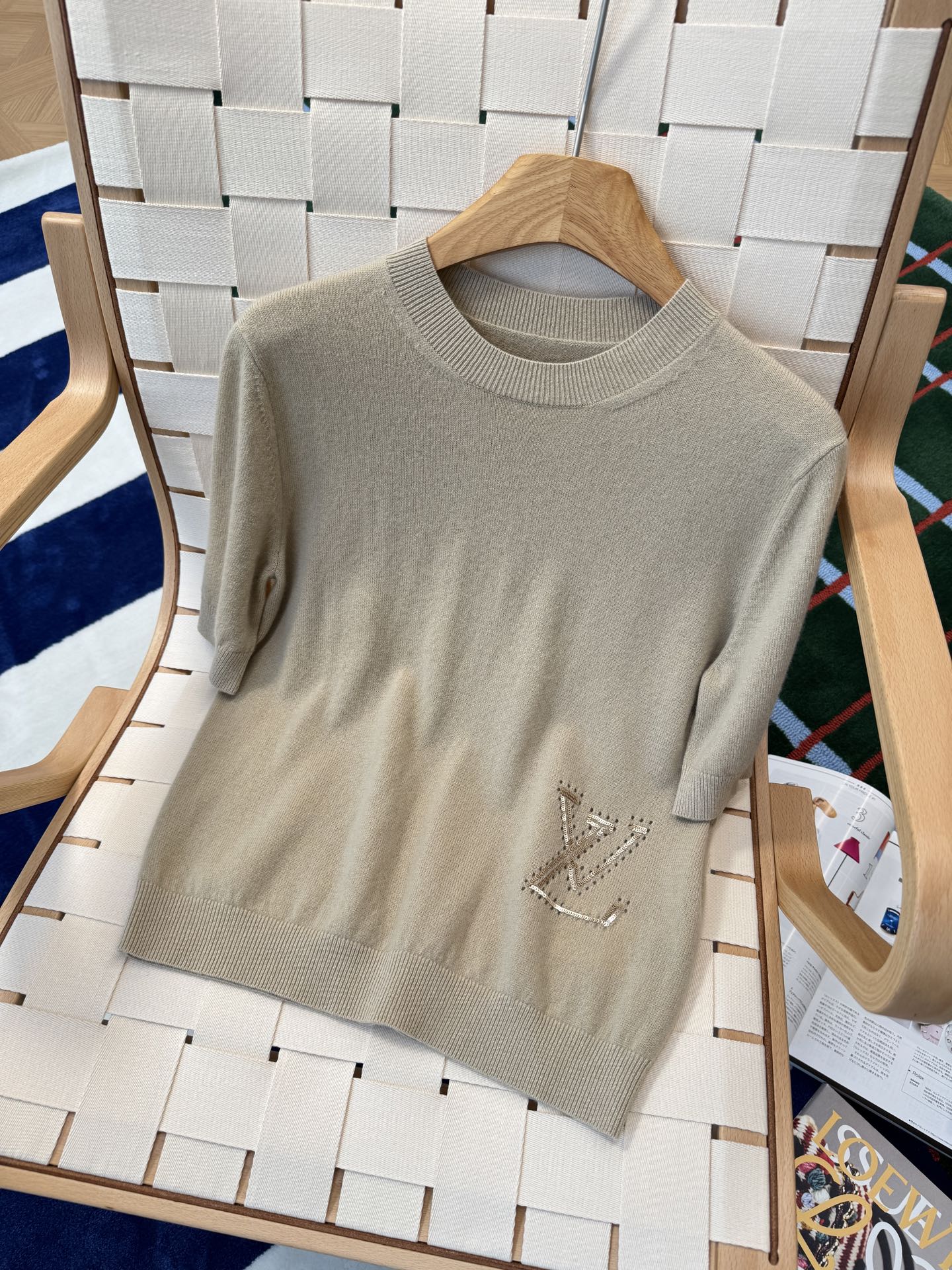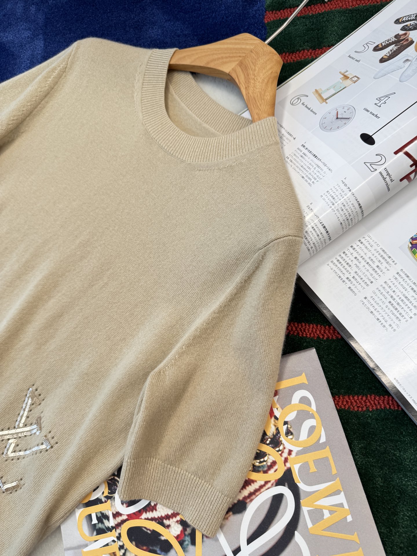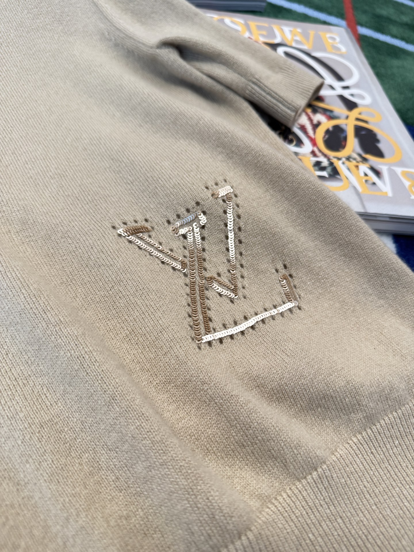 2025秋冬新品 Louis Vuitton 手工亮片logo針織短袖 精品 時尚