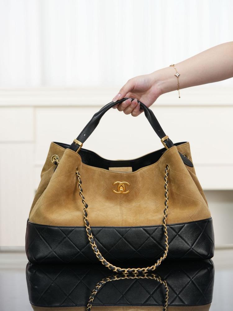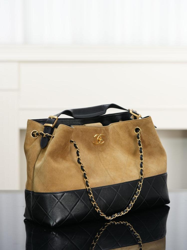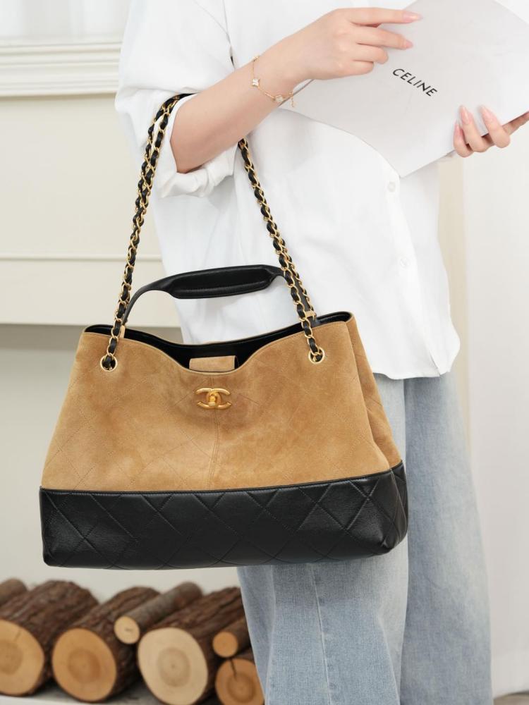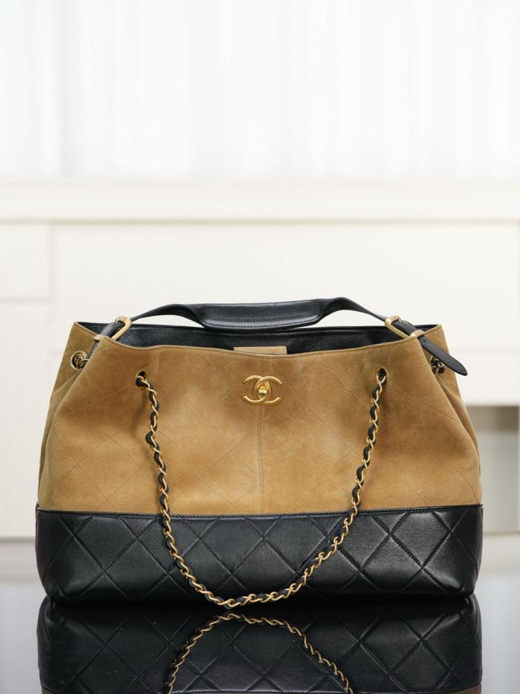 2025秋冬新品 Chanel 25a麂皮拼接購物袋(大號)精品 高仿