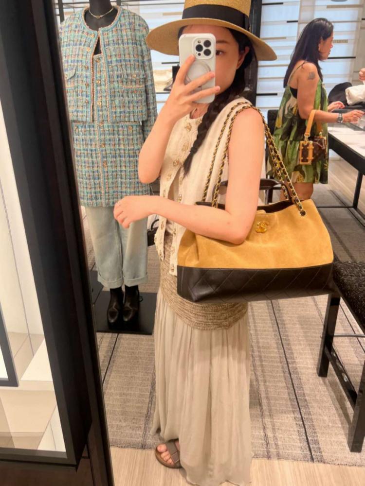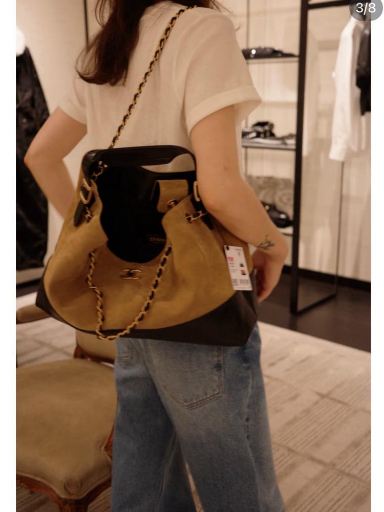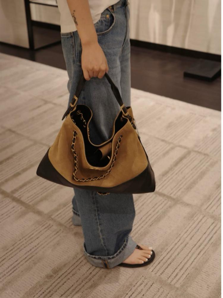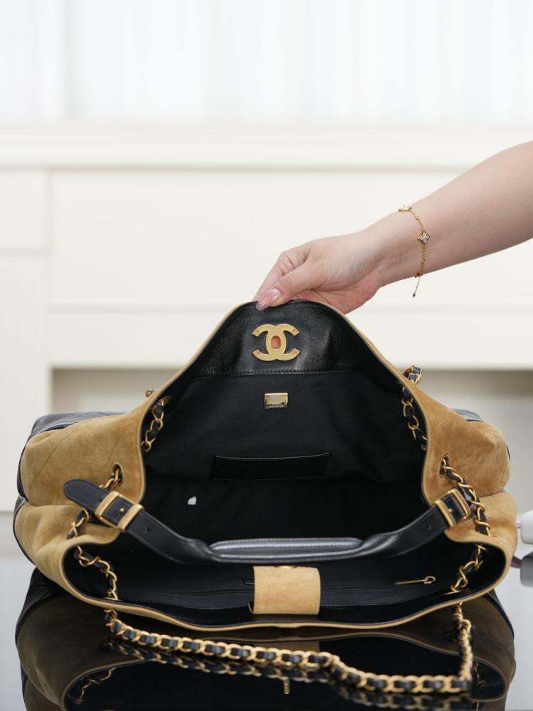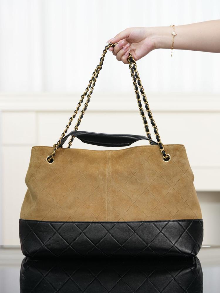 2025秋冬新品 Chanel 25a麂皮拼接購物袋(大號)精品 高仿
