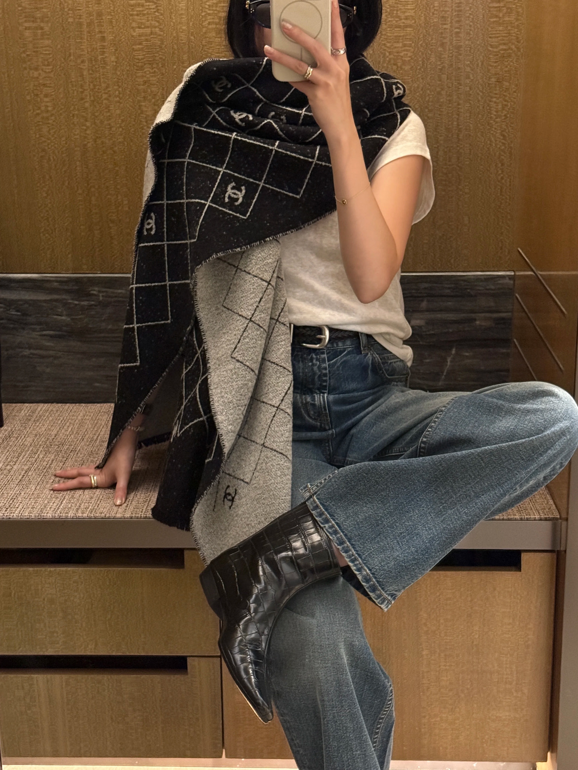 配色低調卻帶著高級感,不論是當圍巾還是當披肩都非常好搭。