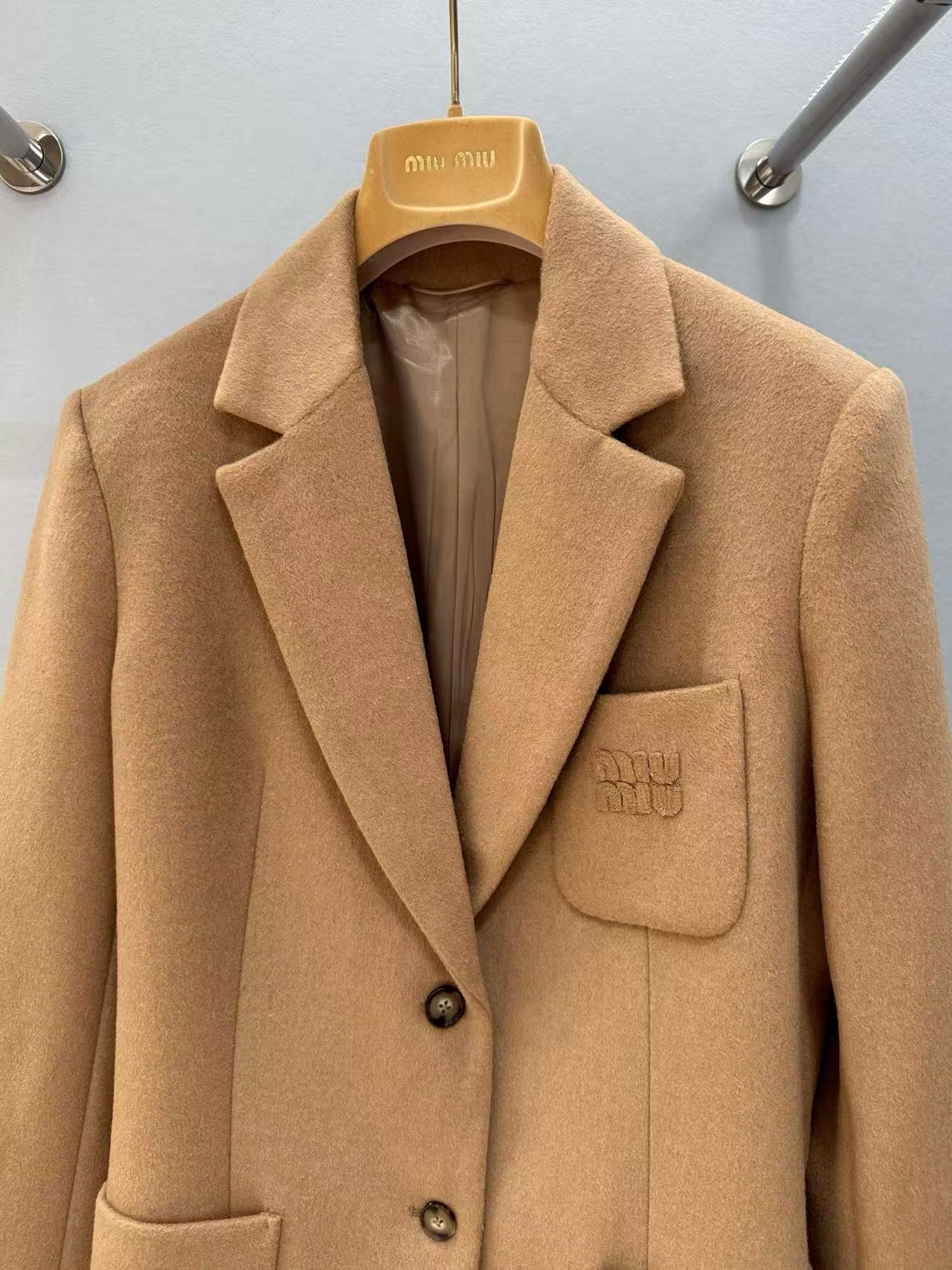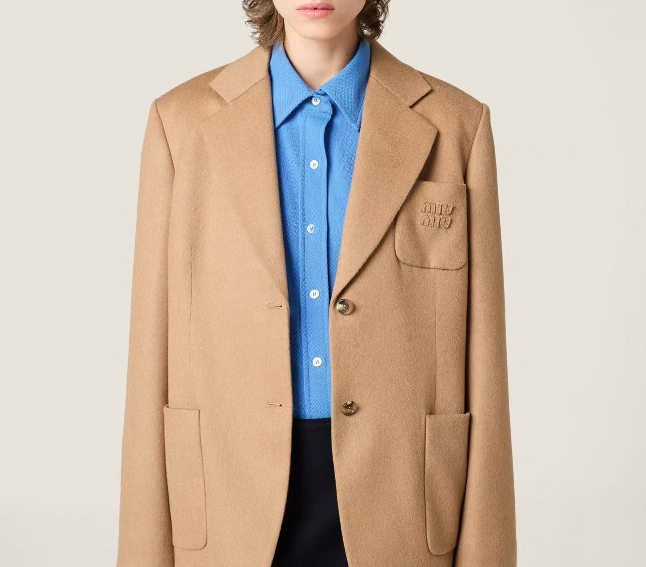 <div>2025早秋 MIU MIU 徽標驼毛西服外套 高仿 精工</div>
